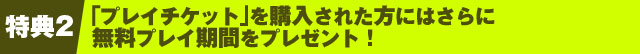 ※「プレイチケット」の購入方法によっては、無料プレイ期間のプレゼントが2回に分かれる場合があります。