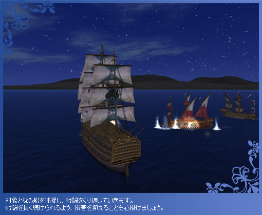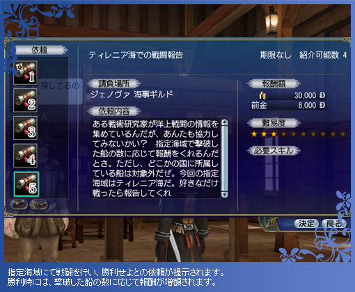 各地の海事ギルドに、新たな依頼“海域戦闘”が追加されます。海域戦闘では航海者の戦意がある限り、継続して戦えます。