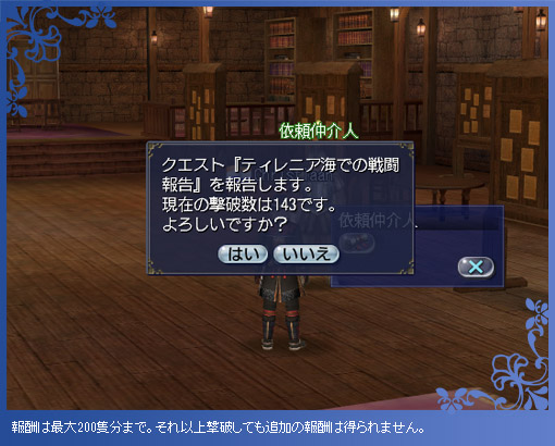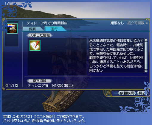 存分に戦ったら、海事ギルドに戻って報告しましょう。一度でも勝利すれば、いつでも報告できます。