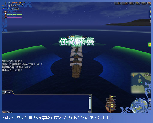 海域戦闘を続けていると、通常では登場しない強敵が襲来することがあります。腕に自信のある航海者は、是非チャレンジしてください。