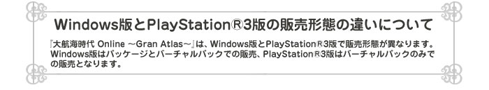 | タイトル | 『大航海時代 Online 〜Gran Atlas〜 バーチャルパック』 |