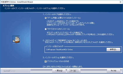 インストール方法とインストール先フォルダー、インストールオプションをお選びください。
