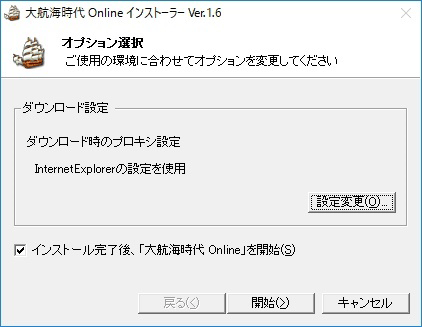 インストール画面が表示されますので、[ 開始(>) ]ボタンをクリックし、インストールを開始してください。