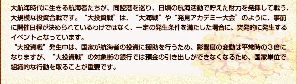 | ※“大投資戦”の詳細な発生条件は、攻略要素といたします。 |