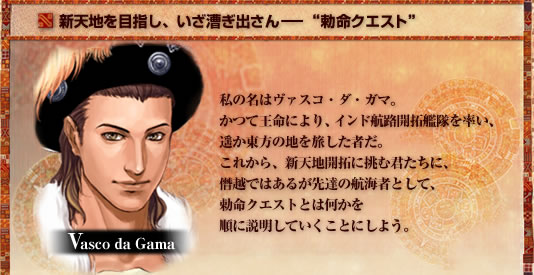 かつて、私も祖国ポルトガルの国王の命により、航路を確たるものとすべく、 第2次、第3次と、新たな任務を担って何度もインドへと渡った。 今回は、君たちが新たな航路開拓の役目を担い、祖国と新天地を往復することになるわけだ。