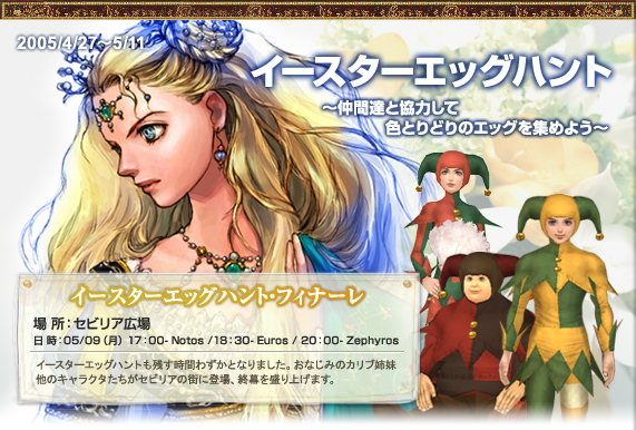 世界15箇所にいるイベントNPC「イースターヘア」からヒントを貰いイースターエッグを獲得してください。 |