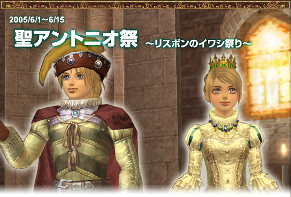 本作の「聖アントニオ祭」では、ポルトガル所属の方だけでなく、全ての所属国のプレイヤーがお楽しみいただけます。イベント期間中、プレイヤーがリスボンを訪れると、あいにくの不漁で魚料理が作れず困っている屋台の店主や、無理難題を言う料理人、恋に悩む男女等、様々な人々が街に登場します。プレイヤーは、釣りや料理のスキル、そして、これまで培ってきた冒険の知恵等を生かし、難局を乗り切る必要があります。