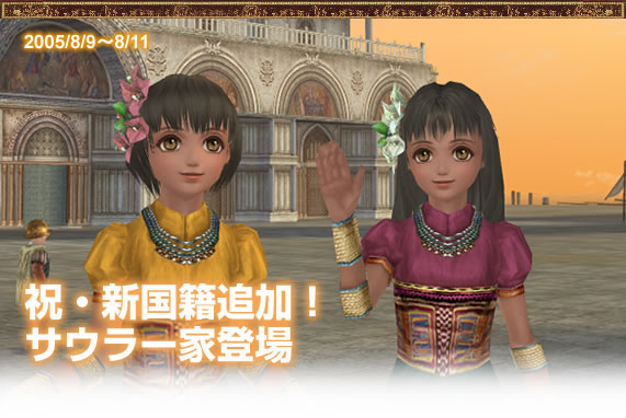 新国籍追加を祝しサウラ一家が各本拠地に登場、新3国の門出に華を添えます。