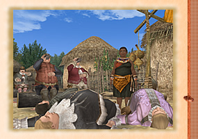 チェックポイントのある街では、住民(NPC)が料理を振舞ってくれます。エントリー時にもらった“収穫祭引換ポイント”を支払うことで、料理を堪能できます。 |