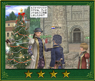 プレゼントチケットとプレゼントの交換は、2008年12月24日の19時以降から可能となります。交換可能となりましたら、マルセイユ広場にいるNPC"プレゼント交換係"に話し掛けてください。 |
