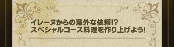2.コース料理のメニュー候補をイレーヌが指定します。その料理に関する知識や秘伝の製法を調べるため、世界中の"料理人"たちから情報を集めましょう。