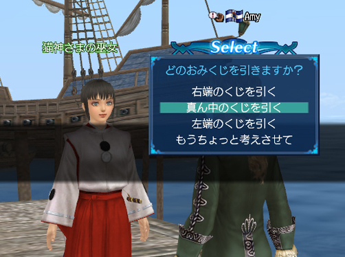・西欧7ヶ国の本拠地に登場するNPC"猫神さまの巫女"に話し掛けると、新年を占うおみくじを引けます。