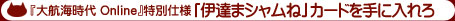 ※『大航海時代 Online』風「伊達まシャムね」特製カードは、1つのGAMECITY市民IDにつき1枚のみ獲得できます。