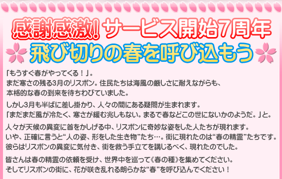 リスボンに春が訪れると、過去のLiveイベントに登場したNPCがゲストとして登場します。彼らからは"桜"をテーマにしたアイテムなど、なかなかお目にかかれないものをプレゼントしてもらえます。また《春の種》探しの旅を達成すれば、希少なアイテムが入手できるかも?