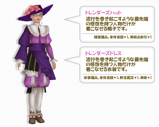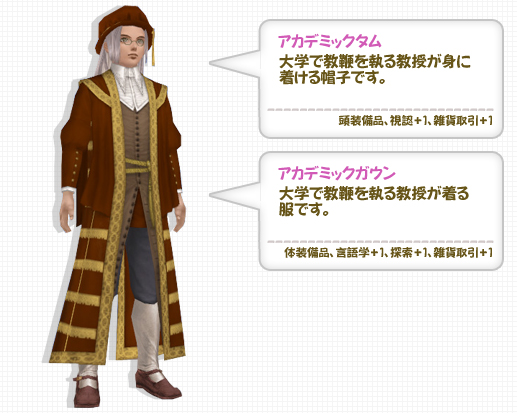 《追憶の衣装箱》には、以下の18種の装備品が入っています。