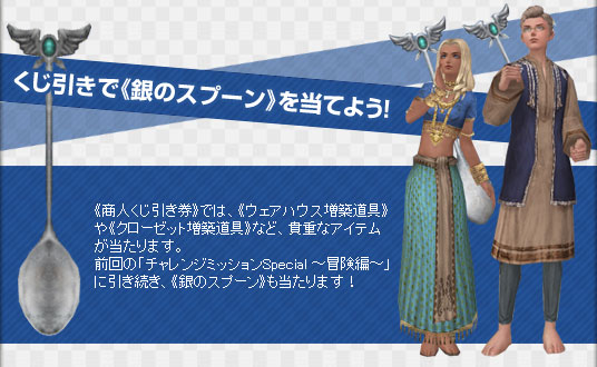 - 3. 各目標を達成すると、報酬と《商人くじ引き券》が手に入ります。《商人くじ引き券》は、各国の本拠地にいるNPC“商人スペシャルくじ屋”にて、くじ引きをする際に使用します。