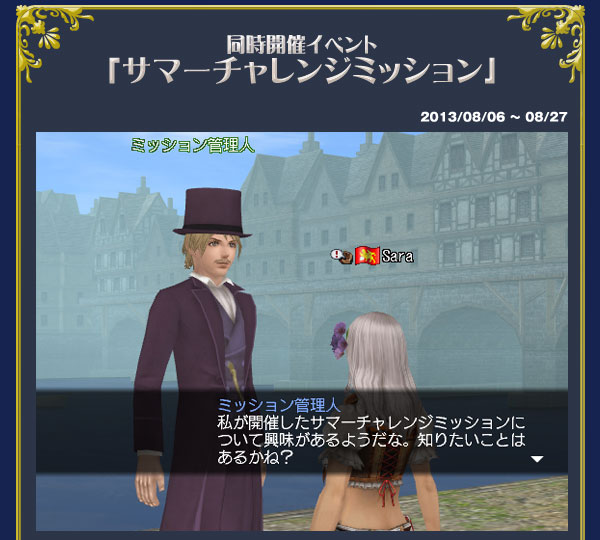 “チャレンジミッション”再び! 今回は“サマーチャレンジミッション”と称して、NPC“ミッション管理人”が皆さんに挑戦状を叩き付けます!