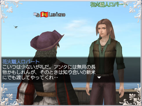 3. 新作花火を届けた際、名声が一定値以下の(経験が浅い)航海者には、ちょっとしたアドバイスを花火職人が教えてくれるほか、初心者向けの応援アイテムを渡してくれます。