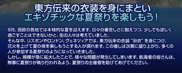 ※Astraios、Eosの両ワールドでは《浴衣》を、メモリアルワールド“Khronos”では《法被》を獲得できます。
