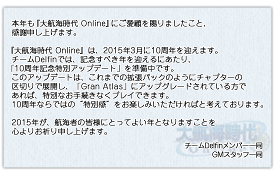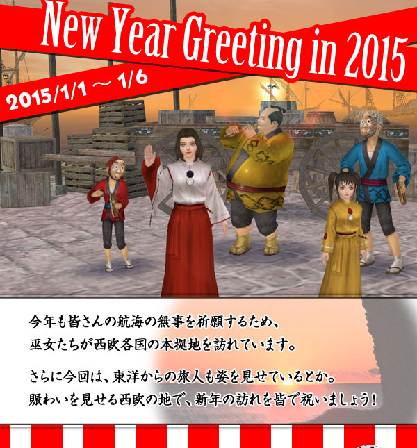2015年1月1日(木)から1月3日(土)までの間、GMがゲーム内を訪れ、皆さんへ新年のご挨拶をいたします。GMは赤い鎧が目印です。