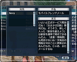 ゲーム中から送信されたメールを携帯電話で受信したり、携帯電話からゲーム内のキャラクターへメールを送信したりすることができます。