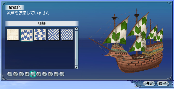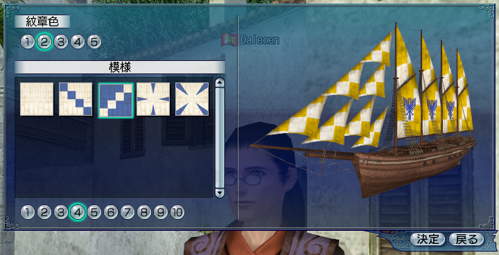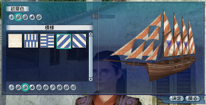 | 船の帆の色と柄を変えられます。 |