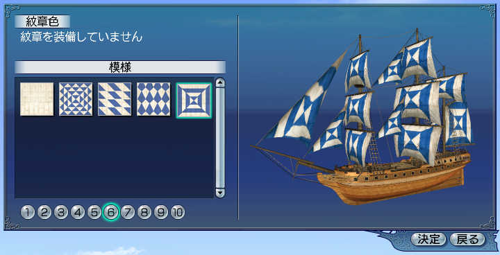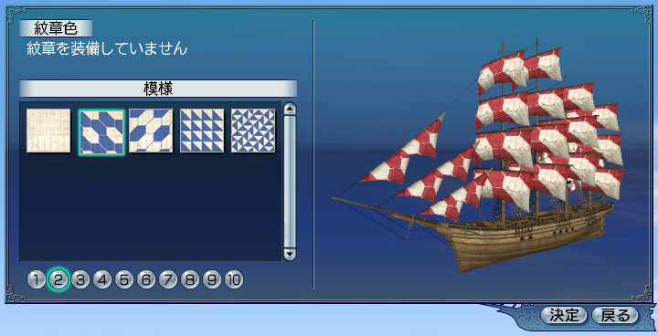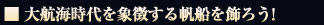 | 船の帆の色と柄を変えられます。 | ||