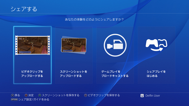 - シェア機能とは、PS4®に保存しておいたスクリーンショットやビデオクリップをアップロードしたり、ゲームプレイをブロードキャスト(配信)できる機能です。詳しくはこちら(他社サイトへ移動します)をご覧ください。