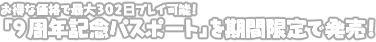 ・本商品を購入された場合、「9周年記念パスポート」の有効期限が経過した後の自動引き落とし商品として「プレイチケット(30日間)」が設定されます。