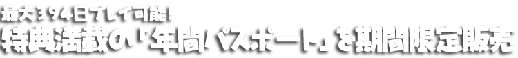 - 本商品をクレジットカード、またはKoei-Cashで購入された場合、「年間パスポート」の有効期限が経過した後の自動引き落とし商品として「プレイチケット(30日間)」が設定されます。