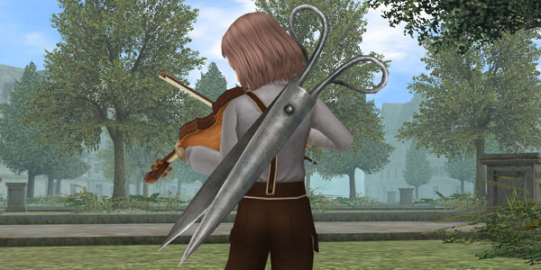 庭師が使っている大きなはさみです。耐久度100、攻撃4、正装度10、変装度10、防御10、必要名声500。スキル効果:保管[+1]、生態調査[+1]、調達[+1] 。