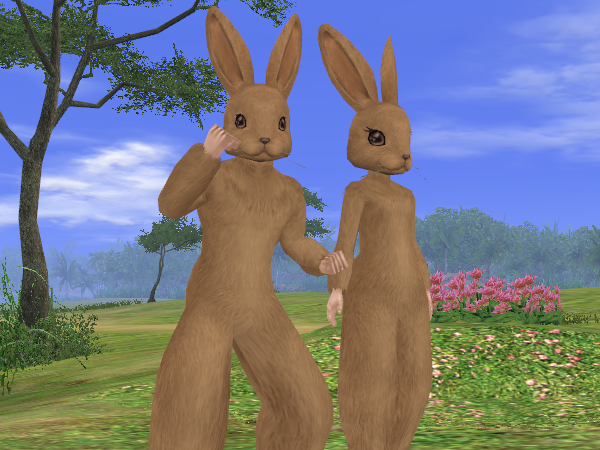 かわいらしい茶ウサギをかたどって作った着ぐるみです。耐久度100、防御力8、変装度15、繊維取引[+2]、食料品取引[+2]、家畜取引[+1]。