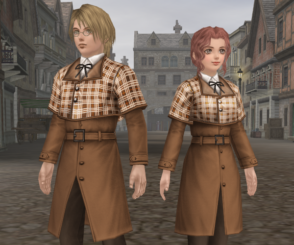英国のとある探偵が愛用するコートです。ケープと組み合わせて着用します。耐久度100、防御力10、探索[+2]、美術[+2]、考古学[+1]。