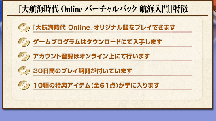 | タイトル | 『大航海時代 Online バーチャルパック 航海入門』 |