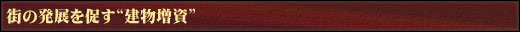 商会開拓街に建設した建物は、時間経過と共に少しずつでき上がっていきます。このスピードを加速させるのが[ 建物増資 ]コマンドです。都市計画を速く進められるので、効果的に使っていきましょう。