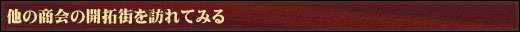 “商会開拓街”は商会代表が候補となる土地に上陸した際に、[ 開拓 ]コマンドを使用して決定します。候補地にはそれぞれ文化圏が設定されているため、その地から得られる交易品等に違いがあります。商会員で話し合って、街を置く土地を決めるといいでしょう。