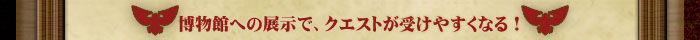 博物館は皆さんの冒険の成果を披露できる場です。貴重なものを展示すれば、みんなの注目を集められることでしょう。さらには、その展示物を見た人が対抗意識を燃やし、ライバルとなってあなたの前に現れるかもしれませんよ。