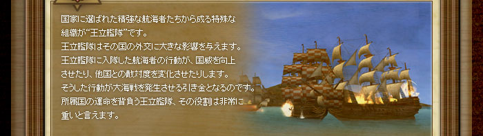 王立艦隊に入隊した航海者は、普段の行動が国家の外交方針に影響を与えるようになります。