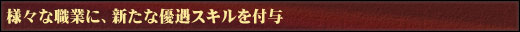 『大航海時代 Online』では様々な職業に就けますが、各職業の活躍の場が広がるよう、また特長を色濃く出せるよう、以下の職業に対して新たに優遇スキルを付与します。