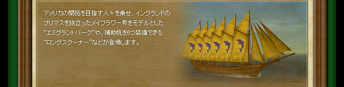 アメリカ開拓時代に、イングランドの人々が乗船したメイフラワー号をモデルとしています。