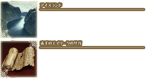 ヴァイキングの英雄“赤毛のエイリーク”を始め、様々な英雄たちが、サガと呼ばれる言い伝えに登場します。ノルウェーを出発した赤毛のエイリークは西方を目指し、アイスランドを経て、グリーンランドに移住したと言われています。また他のサガで語られる英雄“ソルフィン・カルルスェヴニ”はさらに西方を目指し、ヴィンランドに到達したのだそうです。