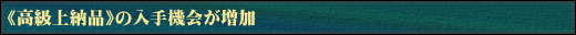 対人戦闘を即座に終了させられる大型船用の《高級上納品》について、生産レシピを追加し、生産できる都市を増やします。また「航海者功労特典」でも、各種《高級上納品》が手に入るようになります。