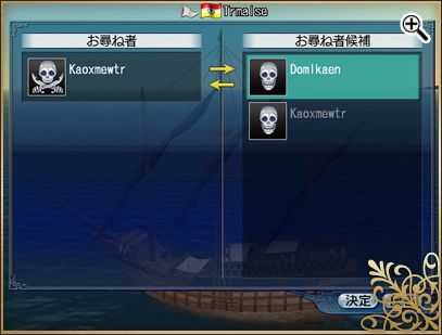 さらに別の海賊プレイヤーから襲われた場合、その海賊プレイヤーが“お尋ね者候補”として仮登録されます。宿命の海賊と定められるのは1名ですので、[1]で登録された“お尋ね者”と入れ替える場合は、“お尋ね者候補”の中から“お尋ね者”を選択してください。