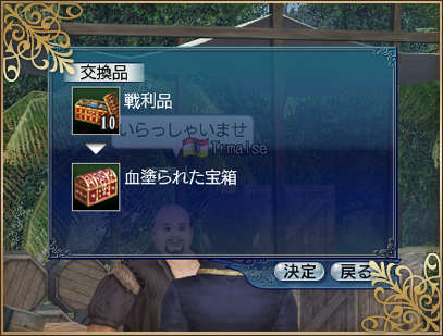 海賊島ではNPC“密売人”が《戦利品》と宝箱の交換をしてくれます。