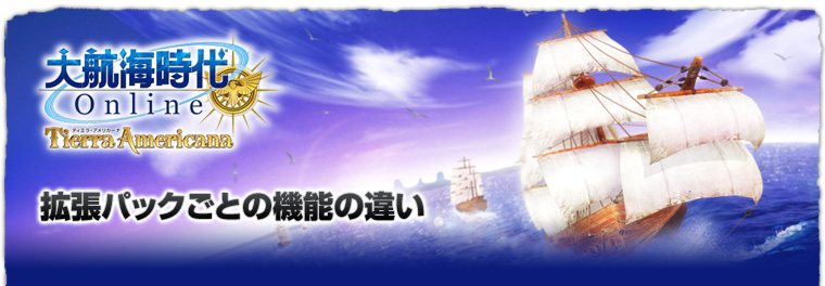 『大航海時代 Online』でお楽しみいただける数多くのプレイ要素の中には、拡張パックを適用しているかどうかによって、プレイ可能なものと、そうでないものがあります。そこで、拡張パックごとにどの要素がプレイ可能なのかを以下の表にまとめました。