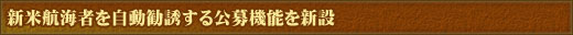 新米航海者を商会に勧誘する際に便利な“公募機能”が新たに登場します。これまで商会に入ったことのない航海者を受け入れたい際に活用してください。