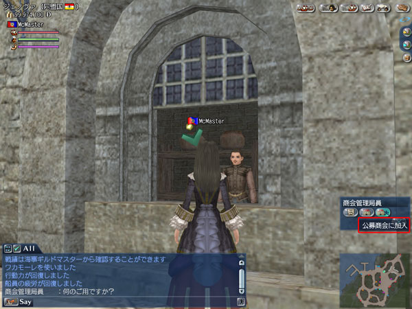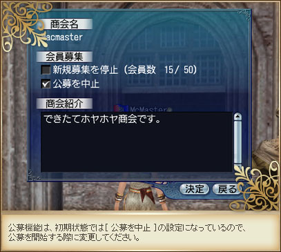 ・NPC“商会管理局員”に話し掛け、[ 公募商会に加入 ]を選択した時