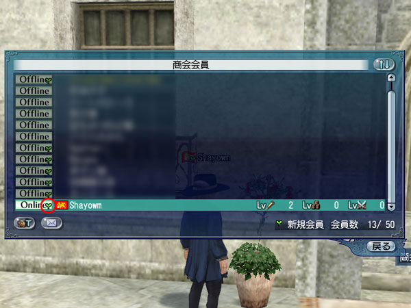 新規に加入した商会員は[ 商会員一覧 ]に、一定期間“双葉のマーク”が付きます。なお、商会にお試しで参加できる機能は一度、商会に加入するまで有効です。