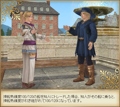 船の性能をどれだけ引き出せるかの指標“操船熟練度”について、調整を行います。船をバザールで購入した場合や、トレードで受け取った場合も、操船熟練度が保持されるようになります。これにより、自分がいままで乗りこなしてきた船をそのまま友人、知人に渡すことができ、受け取った側はすぐに性能を発揮できる状態でその船を使えます。