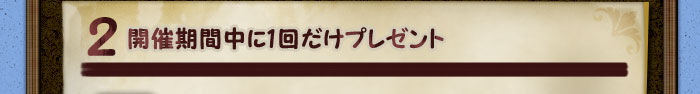 : 開催期間中、実時間1日につき1回もらえます(1個) |